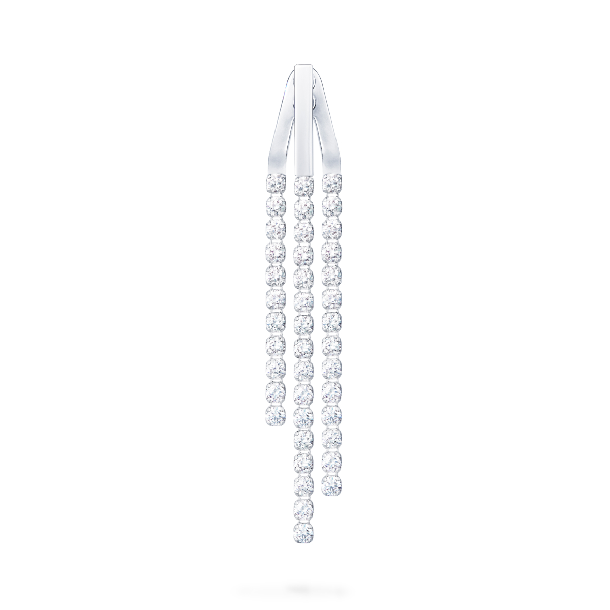 - 铂金单边耳环以纯净的光泽衬托钻石的光芒。 沿着耳廓弧度延伸流畅曲线,钻石链随每次动作释放轻盈的律动感。随身摆动的钻石流苏为侧脸增添俏皮气息,成就时尚点睛之笔。