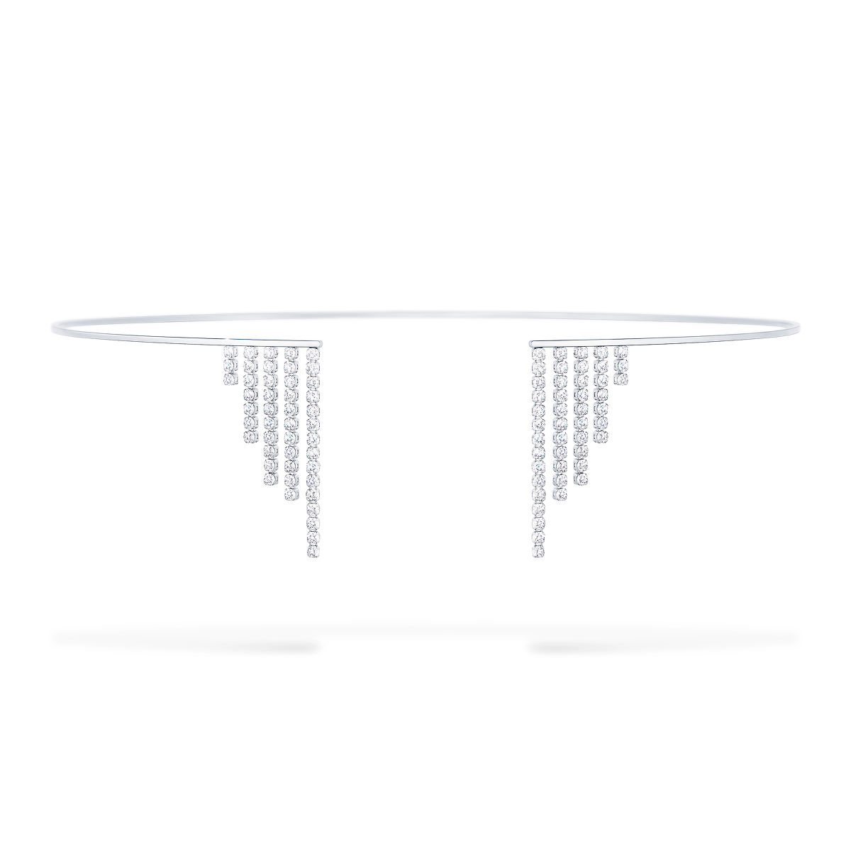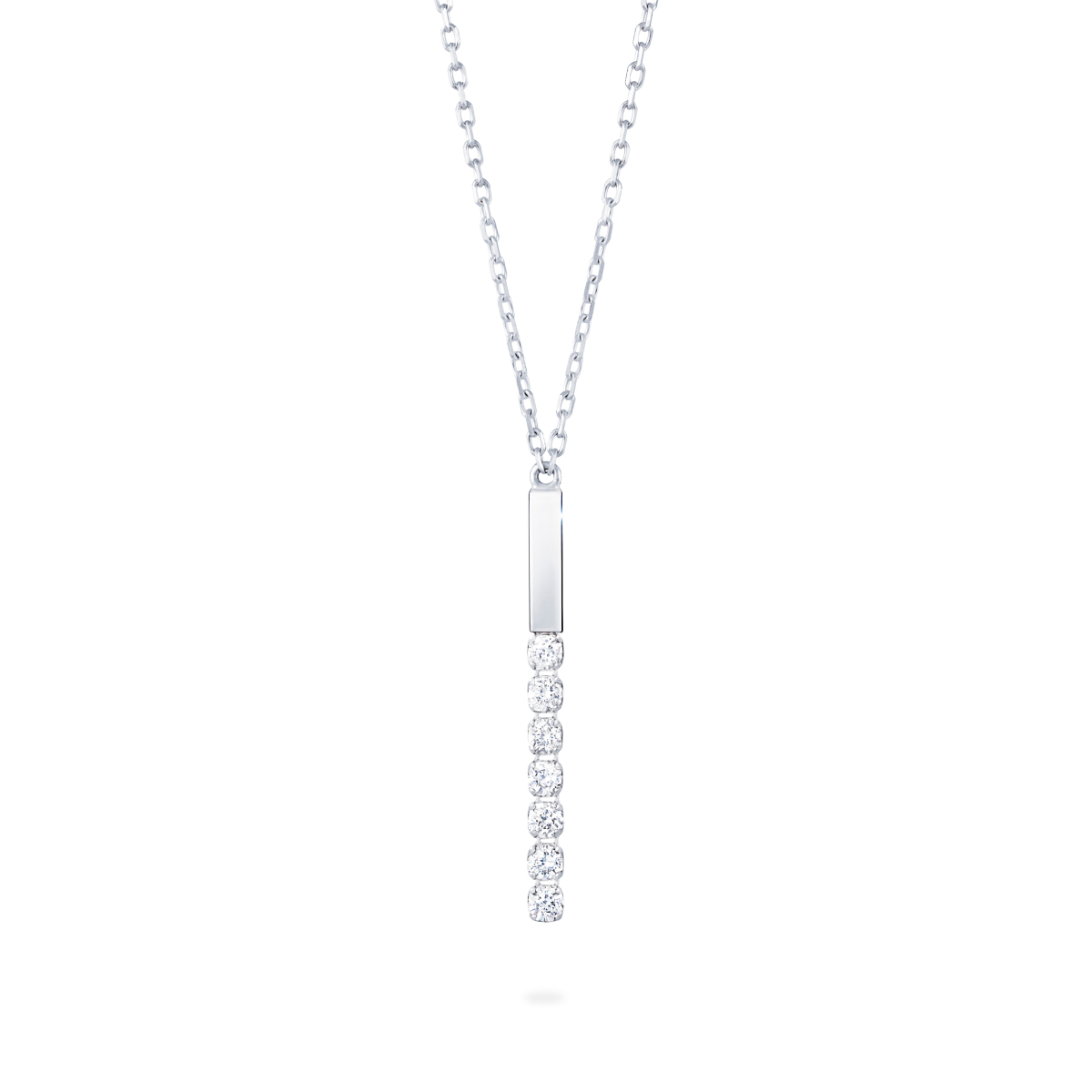 - 这款简约项链的设计灵感源自于水晶吊灯—华丽闪耀,为空间勾勒出交错光影。 本系列整体呈现如绸缎般轻盈飘逸的质感,精心镶嵌长方形切割钻石和圆形明亮式切割钻石,散发出优雅迷人的光泽。 钻石流苏摇曳生辉,为日常穿搭更添雅致格调。