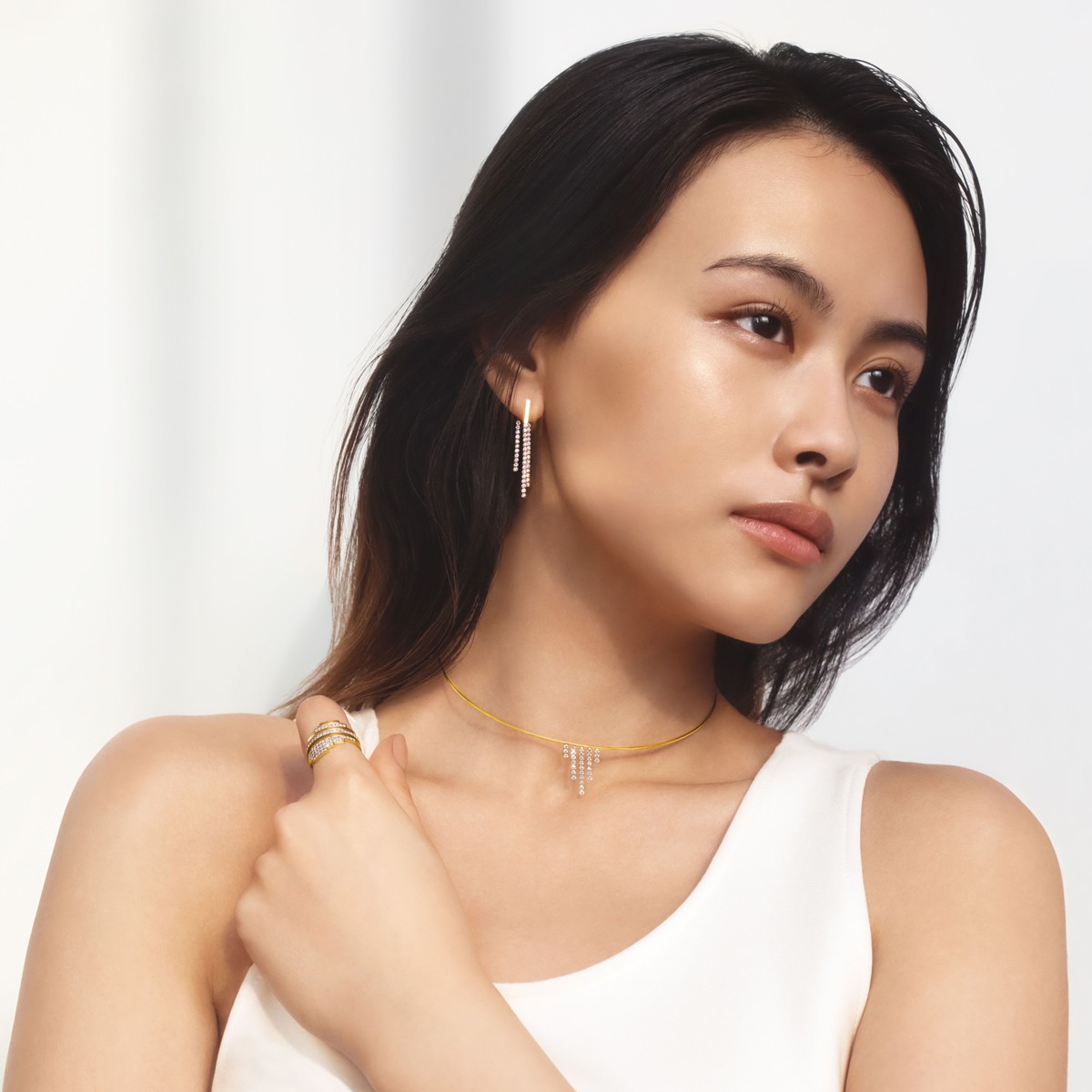 chandelier triple line 耳环 ¥16,500 chandelier 项链 ¥19,400 chandelier layered diamond 戒指 ¥17,800 chandelier layered 戒指 ¥14,600